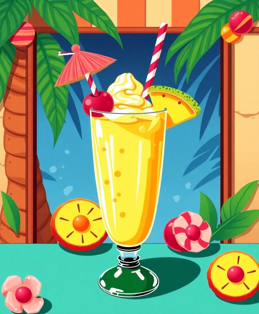 Ultimately, add final details with the small brush to complete your tropical milkshake scene. Therefore, your nostalgic diner artwork becomes ready for proud display.