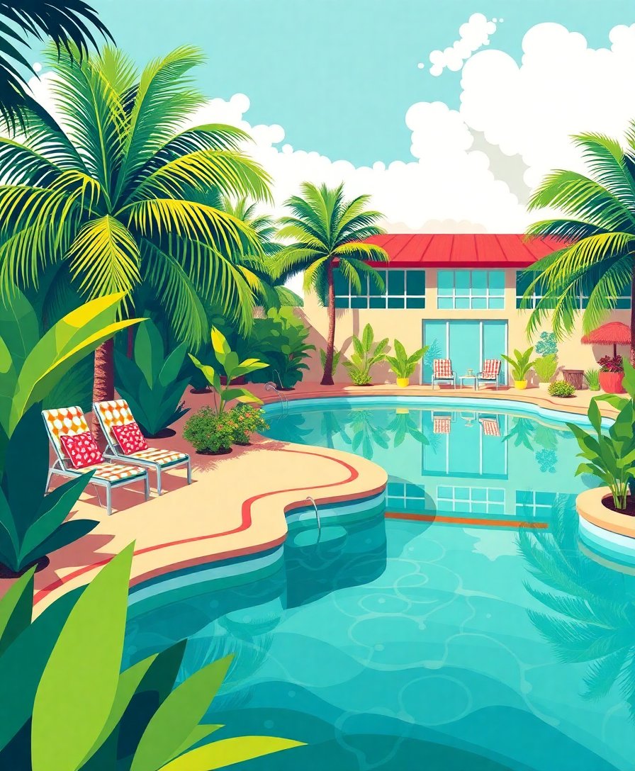 Transform your space with the stunning Vintage Tropical Pool Oasis Paint By Numbers, capturing the essence of mid-century poolside elegance. This captivating design features turquoise waters, swaying palms, and geometric patterns that evoke nostalgic summer memories. Create your own vintage tropical masterpiece with this comprehensive painting kit.