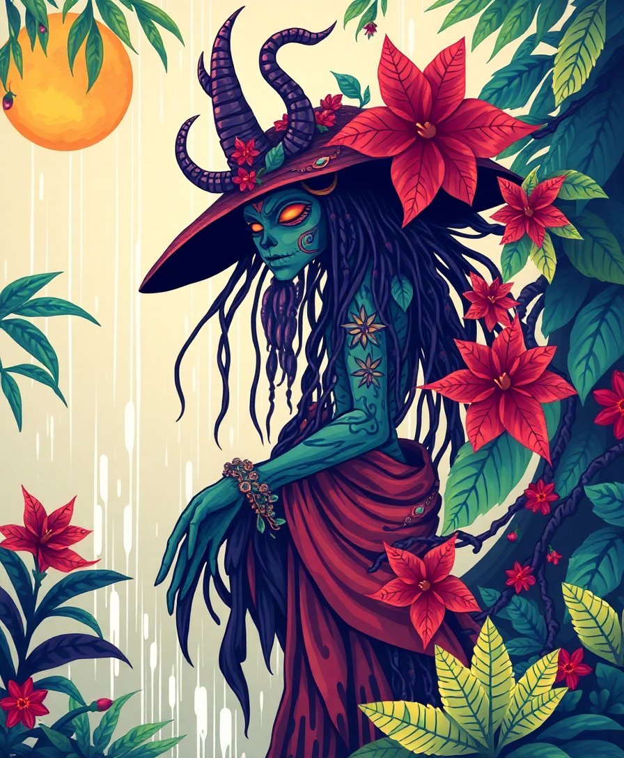 Transform your creative space with this enchanting Vintage Tropical Rain Spirit Paint By Numbers masterpiece. This captivating design blends mystical folklore with botanical elements, creating an artistic journey through ancient rainforest legends.