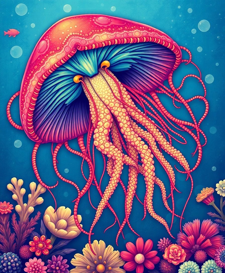 Subsequently, begin with lighter sepia tones to establish the jellyfish’s graceful form. Moreover, work methodically from background coral formations toward foreground details. This approach ensures smooth color transitions throughout your vintage masterpiece.