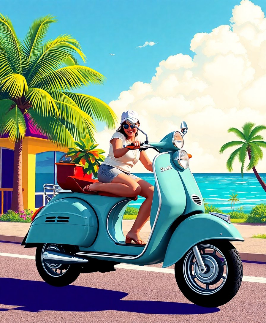 Transform your creative space with this captivating Vintage Tropical Scooter Ride Paint By Numbers kit. This nostalgic design combines retro charm with artistic expression. Perfect for artists seeking a delightful painting experience.