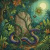 Ultimately, witness your vintage tropical serpent scene come alive with rich detail. The finished piece showcases intricate python scales against weathered tombstone textures. Additionally, the sepia palette creates an authentically aged appearance that captivates viewers.