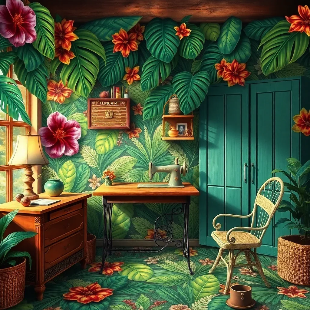 Transform your creative space with this enchanting Vintage Tropical Sewing Room Paint By Numbers masterpiece. This nostalgic design captures the timeless elegance of heritage crafting spaces. Furthermore, the sepia-toned palette evokes cherished memories of traditional sewing rooms.