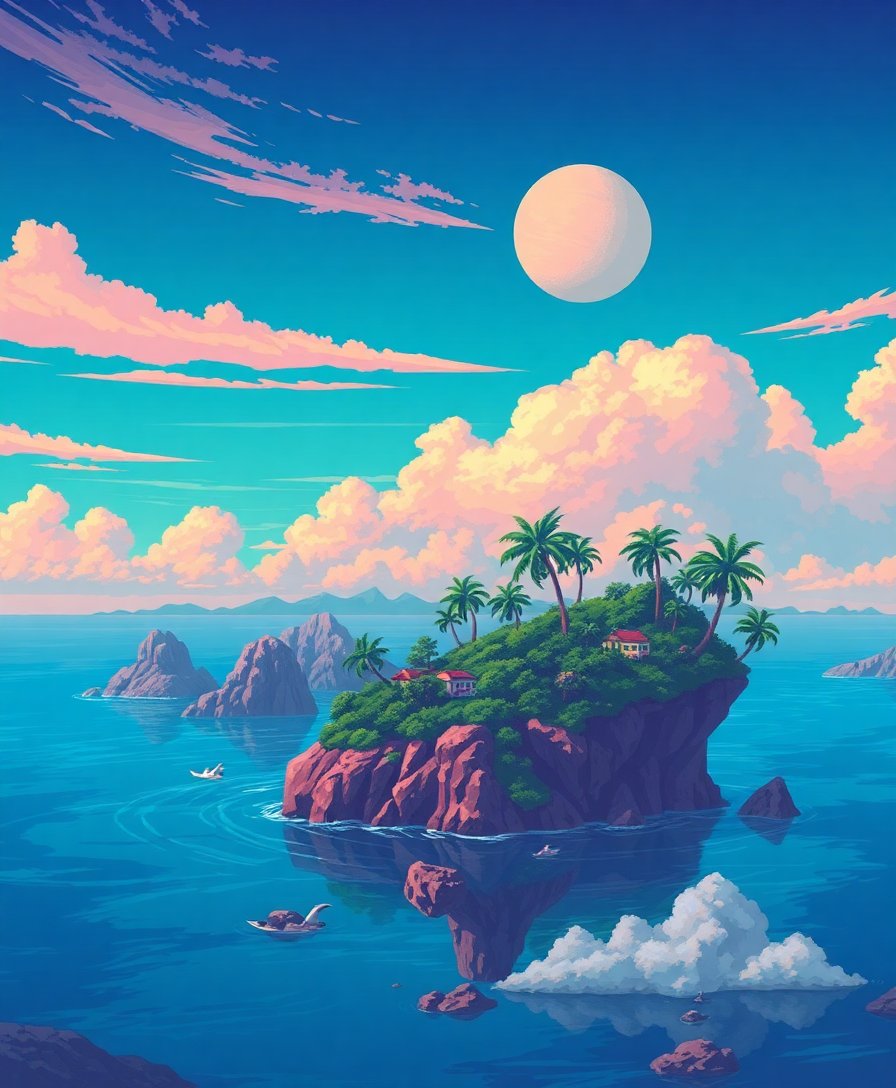 Vintage Tropical Sky Islands Paint By Numbers