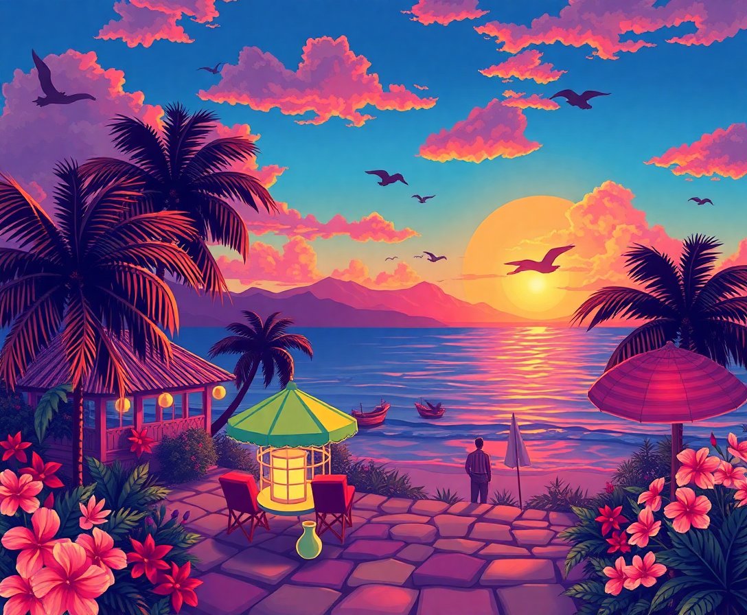 Painting offers therapeutic benefits that enhance mental well-being. This vintage tropical design promotes relaxation through focused creativity. Additionally, the warm colors evoke feelings of summer tranquility. The meditative process reduces stress while building artistic confidence. Each brushstroke brings you closer to inner peace.