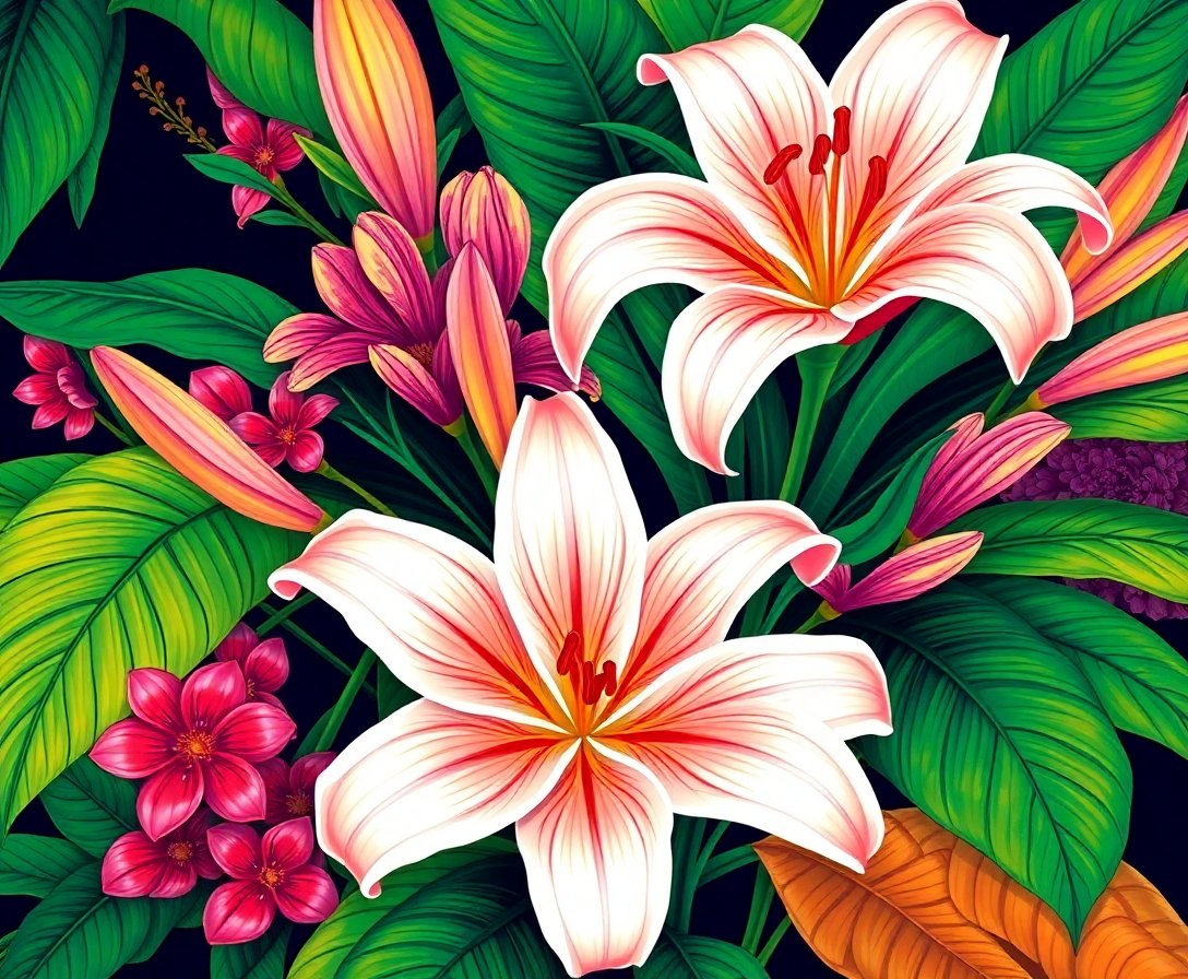 What’s Included in Your Vintage Tropical Spider Lilies Paint By Numbers Kit