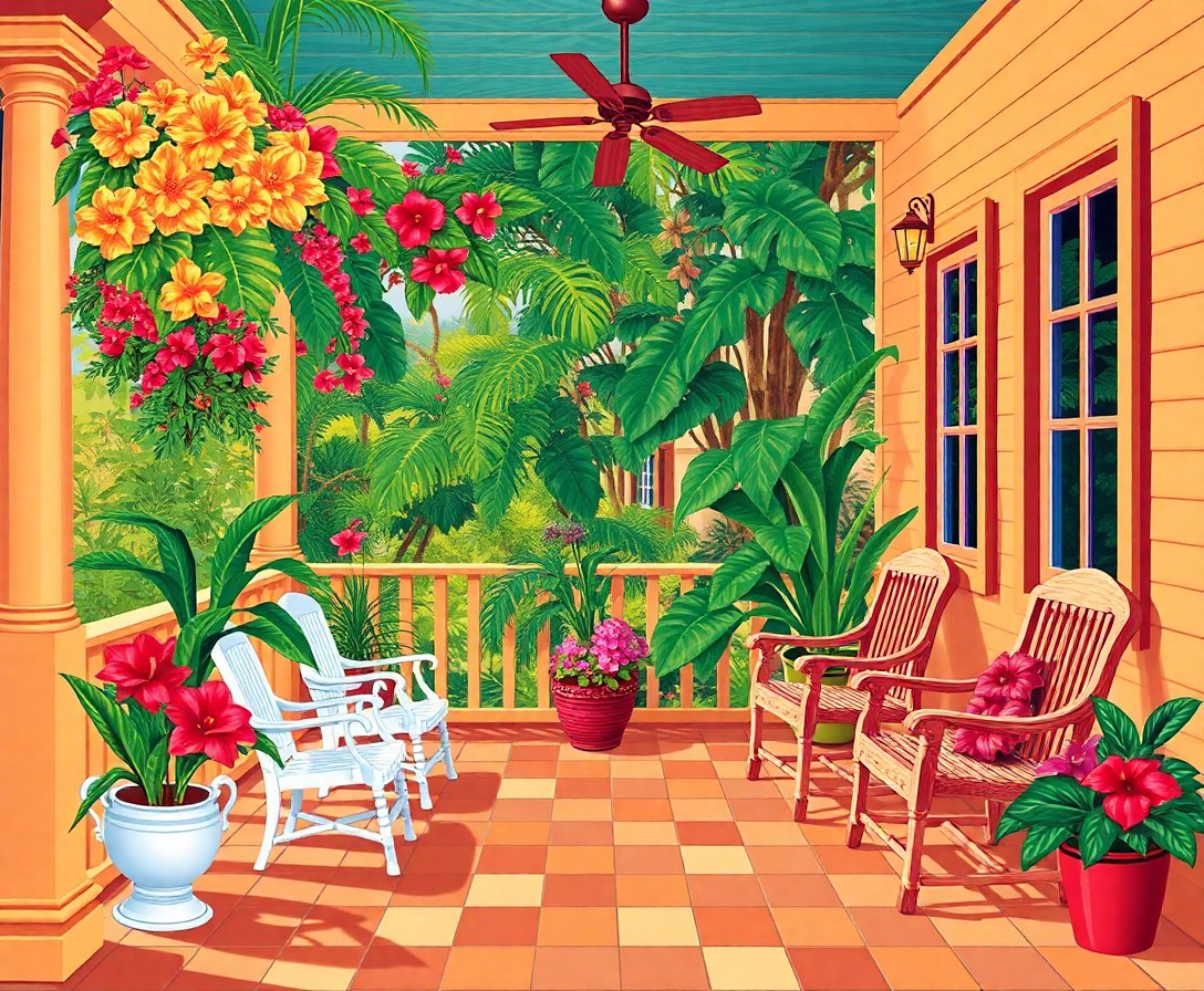 Your Complete Vintage Tropical Tea Porch Paint By Numbers Kit Includes