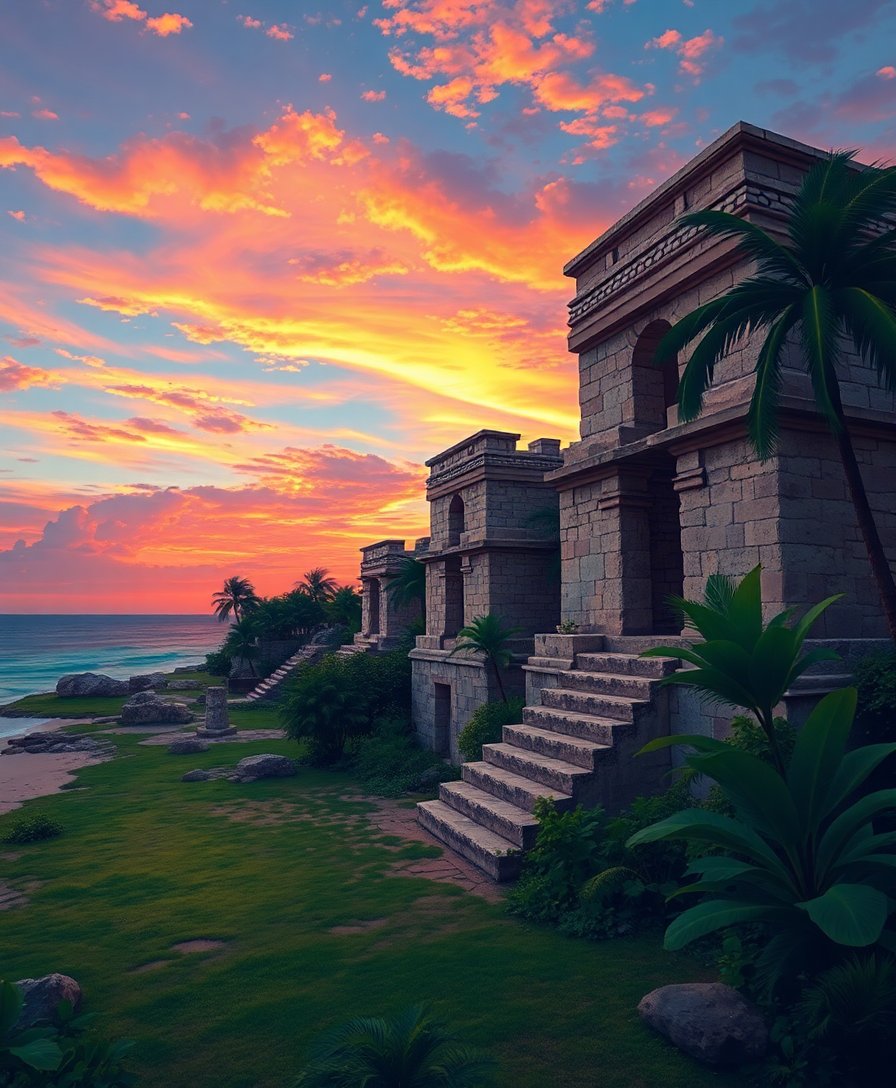 Transform your creative space with this stunning Vintage Tulum Evening Ruins Paint By Numbers masterpiece. This exceptional kit captures the mystical beauty of ancient Mayan ruins silhouetted against a breathtaking tropical sunset. Each brushstroke brings you closer to recreating this iconic cliffside scene.