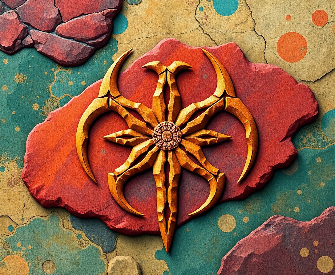 The intricate Celtic triskelion combines historical symbolism with artistic beauty. The weathered basalt textures and sepia tones create an authentic vintage appearance.