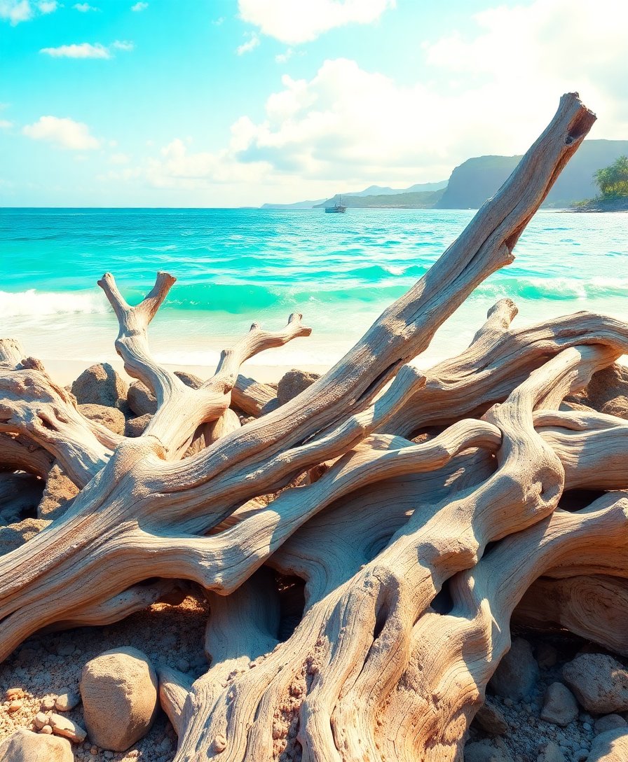 Ultimately, add final details with the small brush to bring your piece to life. Step back frequently to admire your progress. The nostalgic charm of sun-bleached driftwood will transport you to peaceful Hawaiian shores.