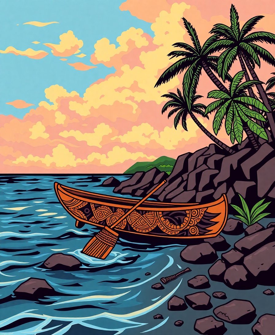 Transform your creative space with this captivating Vintage Waka Volcanic Shore Paint By Numbers masterpiece. This stunning design captures the mystical beauty of Polynesian voyaging traditions against dramatic volcanic coastlines. Moreover, the intricate details showcase authentic waka vessels navigating sunlit ocean waters, creating an immersive artistic journey.