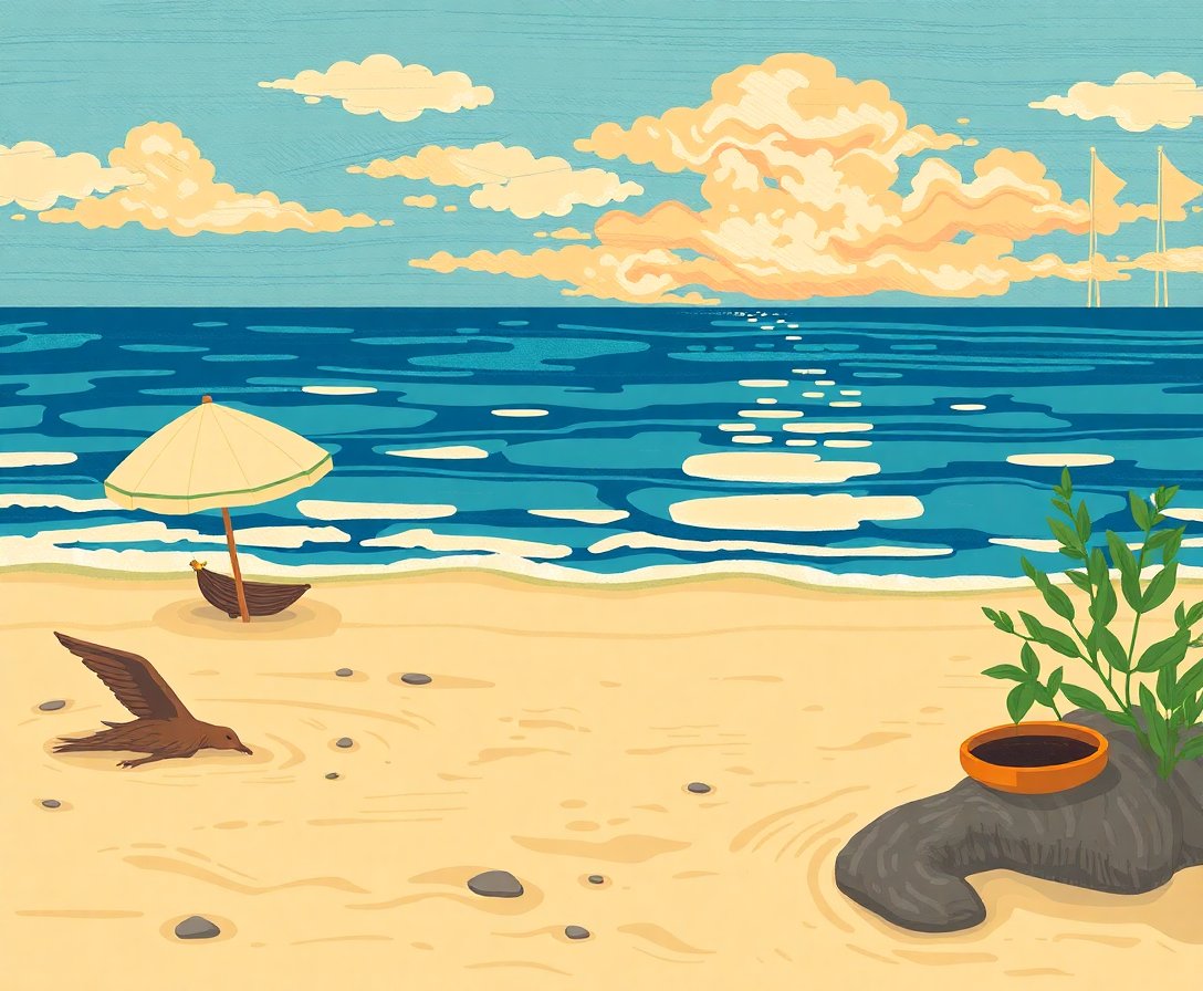 Ultimately, step back to admire your completed vintage woodblock beach scene. The finished painting radiates tranquil energy and historical charm. Display your artwork proudly as a testament to Japanese artistic heritage.