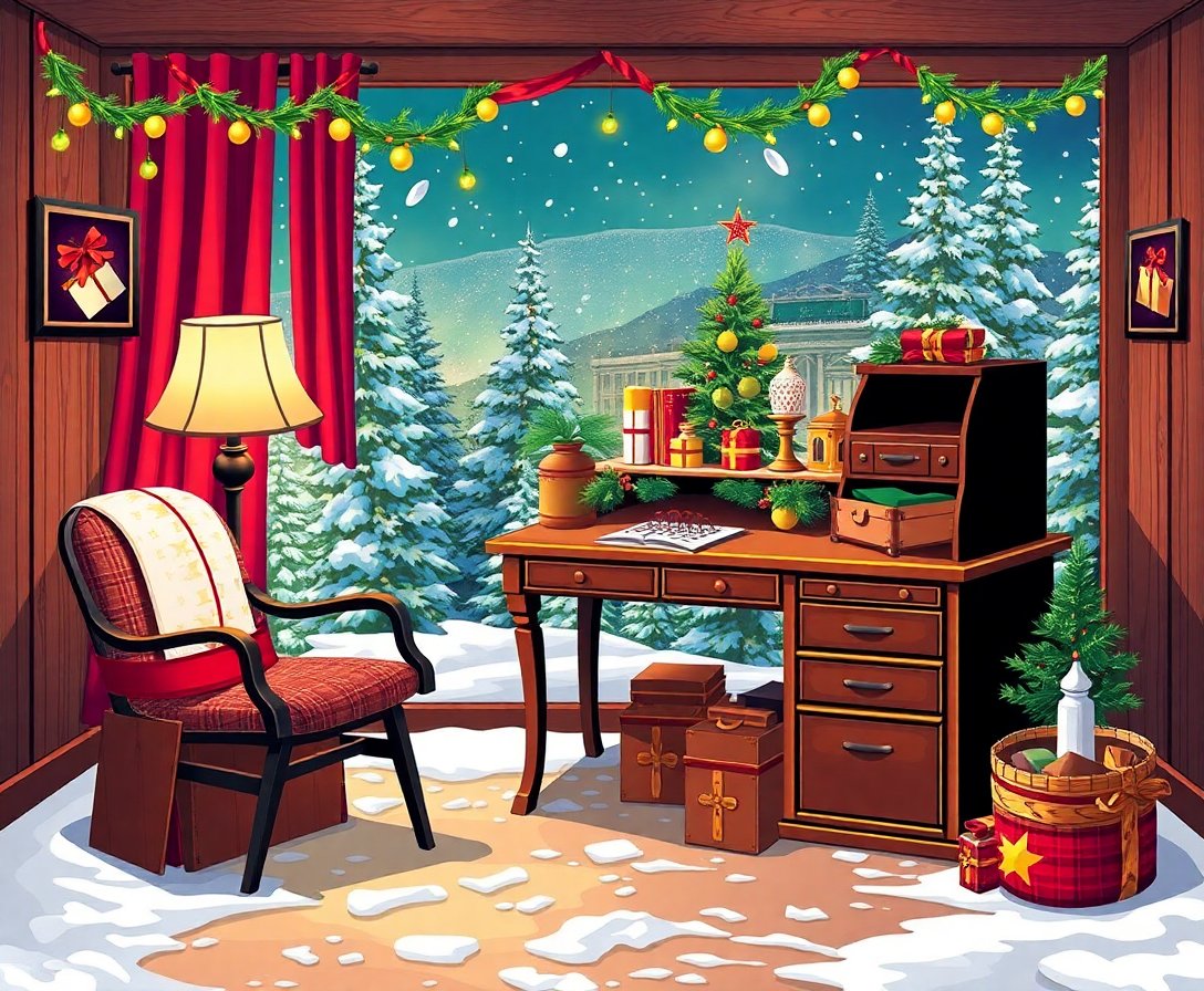 Transform your space with the enchanting Vintage Yuletide Explorer Desk Paint By Numbers, a sophisticated artistic journey that captures the warmth of Victorian holiday traditions. This exquisite design features an elegant explorer’s desk adorned with vintage brass elements, tropical maps, and yuletide charm.