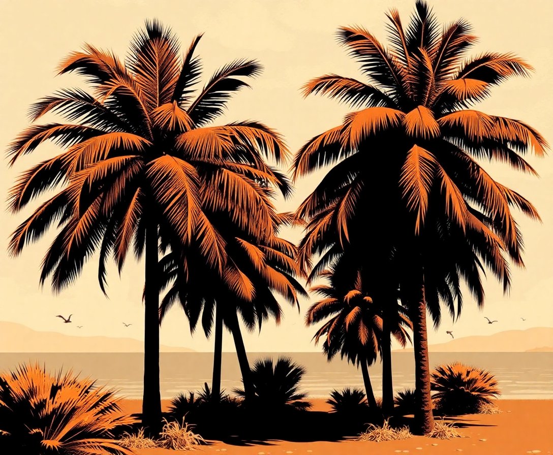 Transform your creative space with the Vintage Zambezi Palm Shores Paint By Numbers masterpiece. This stunning sepia-toned riverbank scene captures the timeless beauty of African palm trees swaying along tranquil shores. Each brushstroke brings you closer to creating your own vintage landscape artwork.