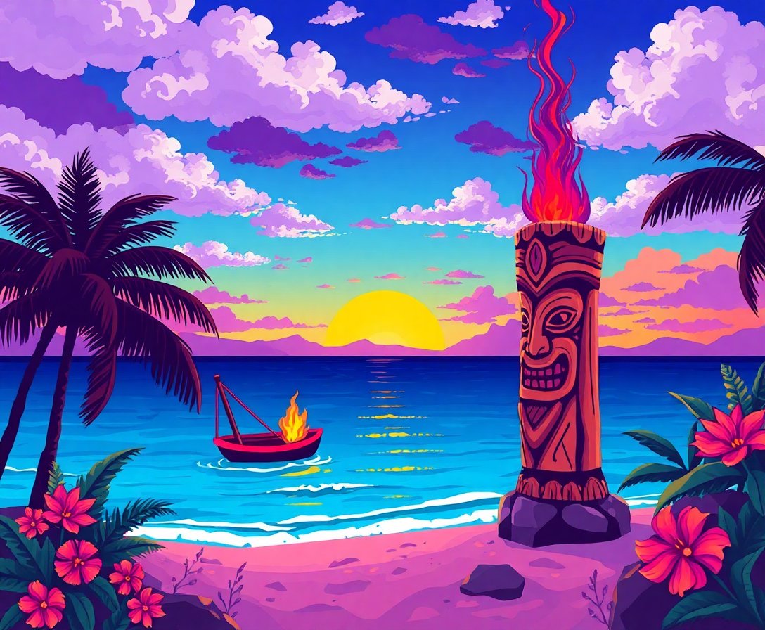 Transform your space with the captivating beauty of a tropical sunset through this stunning Violet Horizon Tiki Fire Paint By Numbers masterpiece. This enchanting design captures the mesmerizing glow of tiki flames against a vibrant violet horizon, creating a perfect blend of tropical paradise and artistic expression.