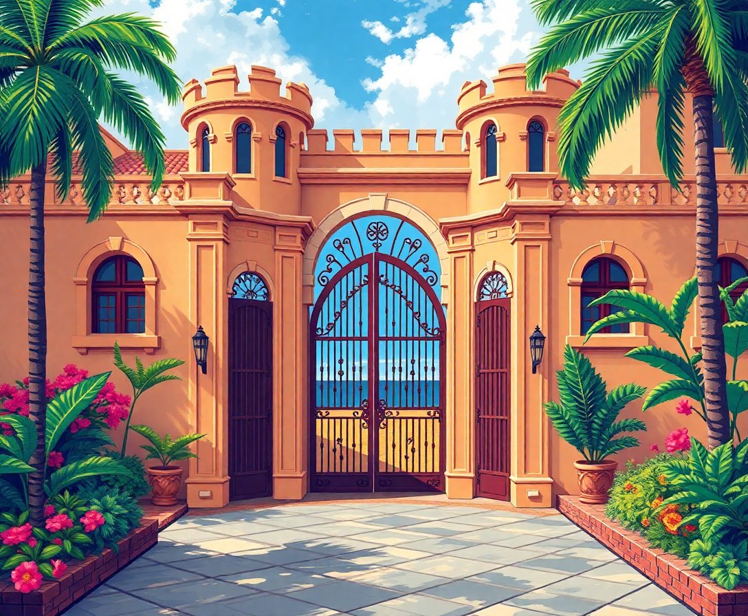 Transform your creative space with this captivating Weathered Caribbean Mansion Gates Paint By Numbers kit. This tropical masterpiece captures the rustic charm of vintage Caribbean colonial architecture. Experience the weathered beauty of aged wooden gates that tell stories of island heritage.