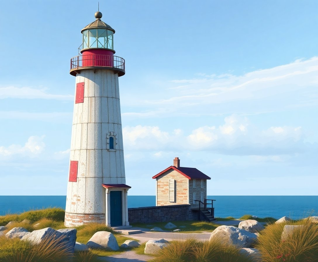Ultimately, step back and admire your finished beacon artwork. Indeed, the realistic weathered textures and coastal atmosphere create a stunning focal point. Your completed seascape painting showcases impressive architectural detail worthy of any wall display.