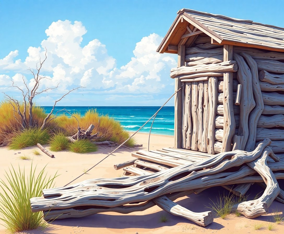 Transform your artistic journey with the Weathered Driftwood Island Shack Paint By Numbers kit. This coastal masterpiece captures weathered textures and beachfront serenity. Furthermore, this detailed canvas brings sun-bleached charm to any space.