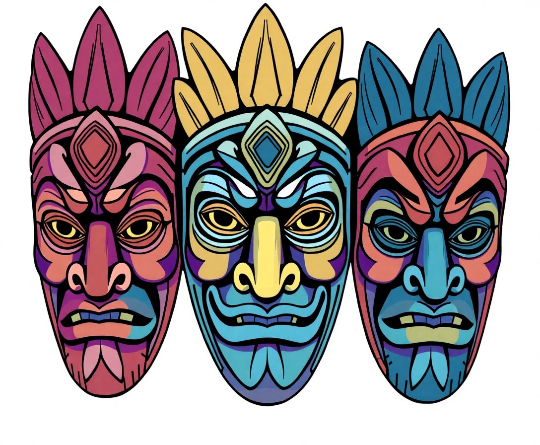 Weathered Island Mask Trio Paint By Numbers