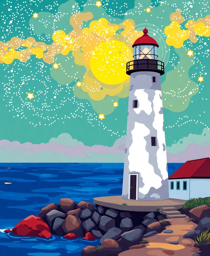 Ultimately, step back and admire your finished coastal beacon glowing under painted stars. Moreover, the weathered lighthouse details will showcase your artistic dedication. Your completed piece radiates vintage charm and coastal serenity.