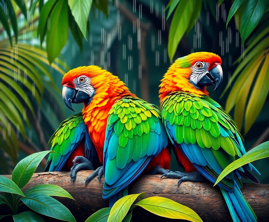 The wet feathers detail and vibrant red colors create stunning visual impact. Additionally, the rainforest shelter theme brings natural serenity to your space.