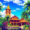 The high-quality linen canvas measures 16×20 inches, providing ample space to capture all the beautiful architectural details and tropical atmosphere.