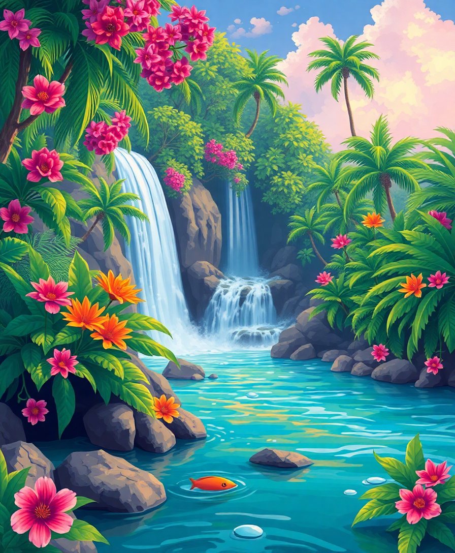 Experience the joy of creating your own tropical oasis through this exceptional paint by numbers kit. Let the whispers of cascading water guide your artistic journey toward inner peace and creative fulfillment.