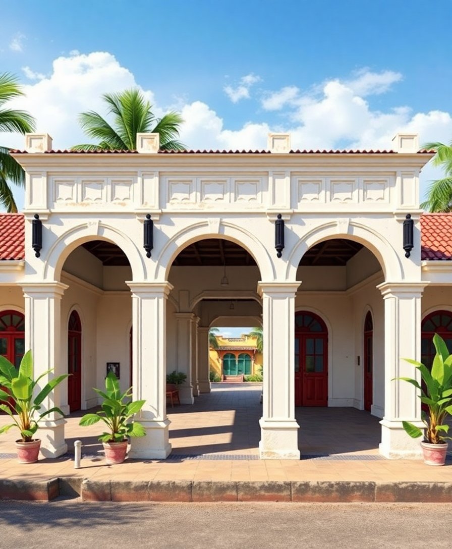 Ultimately, step back and admire your completed masterpiece. The whitewashed arches now radiate with sunlit charm. Moreover, your finished painting captures the essence of colonial architecture perfectly.