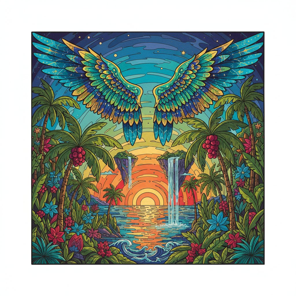 Experience the magic of creating your own tropical paradise featuring magnificent winged beings. Therefore, start your artistic adventure today with this Wings Over Tropical Palms Paint By Numbers kit.
