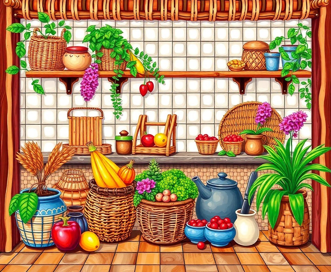 Transform your space with this stunning Woven Rattan Kitchen Bounty Paint By Numbers kit. This captivating design showcases vintage culinary charm through intricate woven textures and harvest-inspired elements. Perfect for creating a cozy atmosphere in any home.