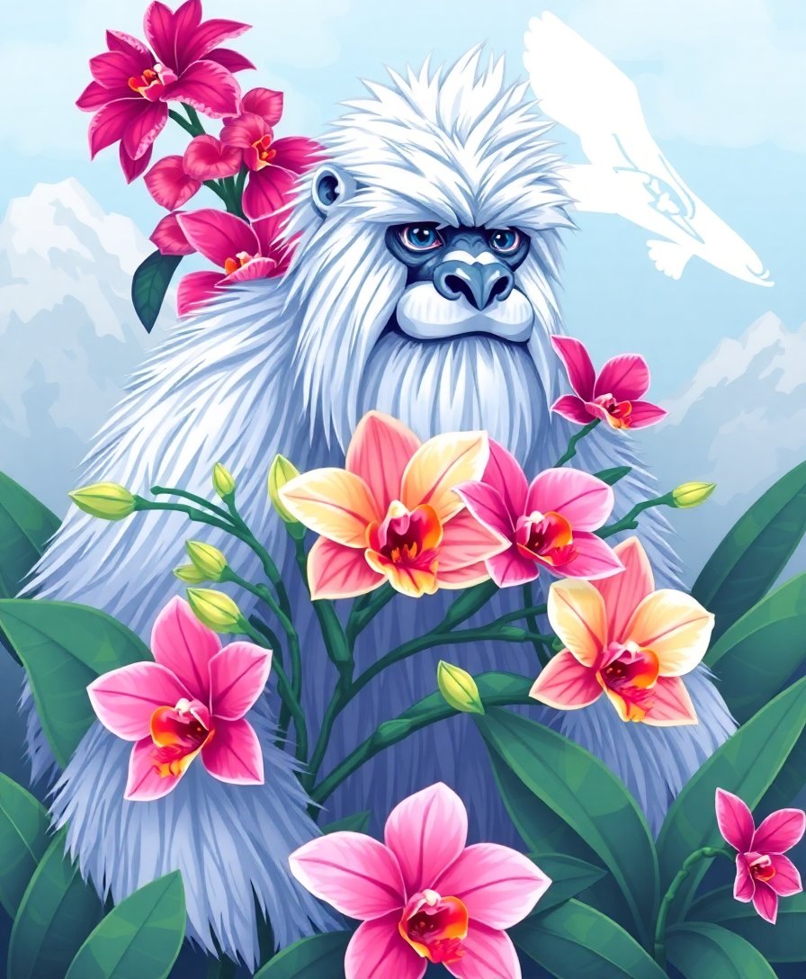 Transform your space with this extraordinary Yeti Guarding Tropical Orchids Paint By Numbers masterpiece. This captivating design blends mythical wonder with vibrant tropical beauty. Create a stunning artwork that showcases the gentle protector amid lush orchid blooms.