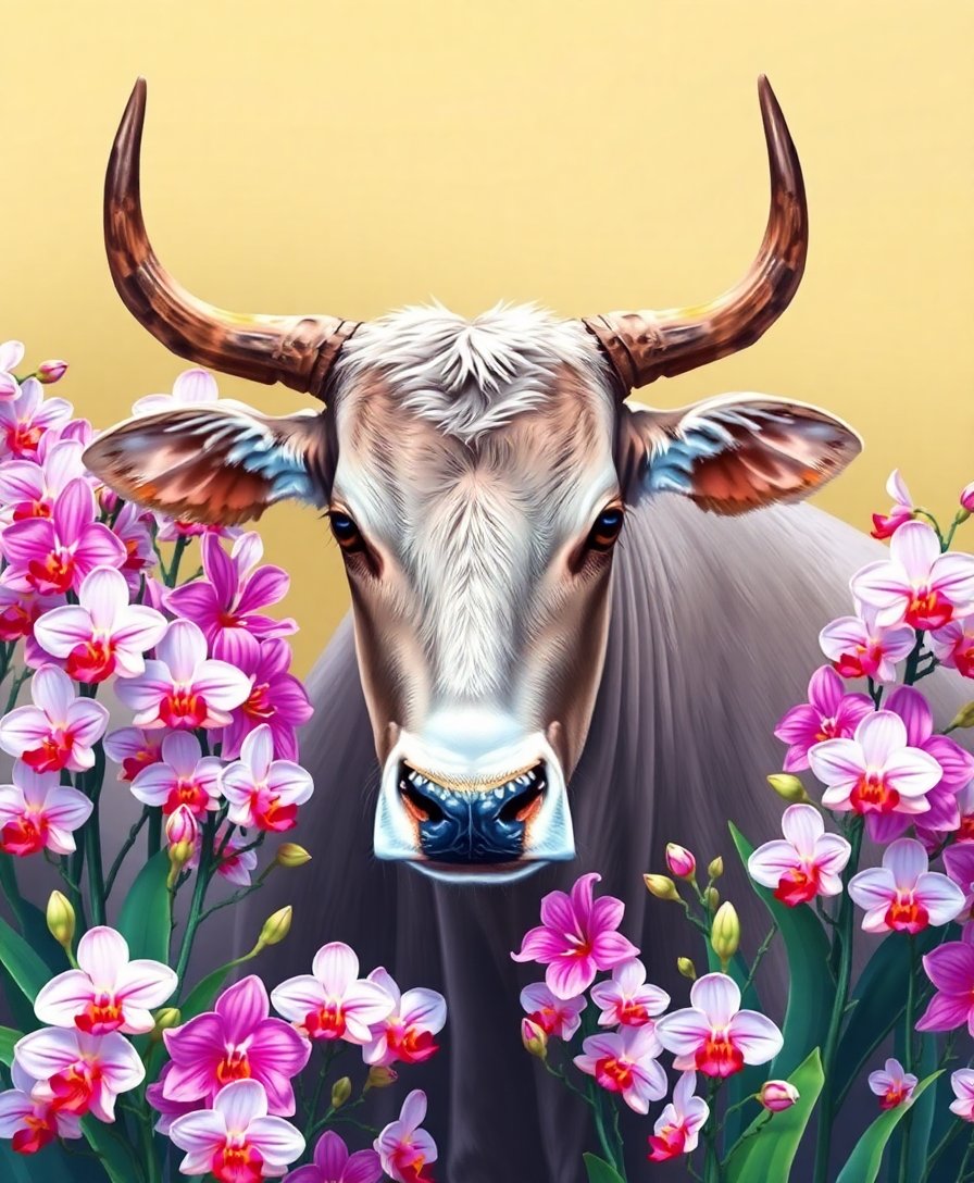 Benefits of Zebu Among Blooming Orchids Paint By Numbers